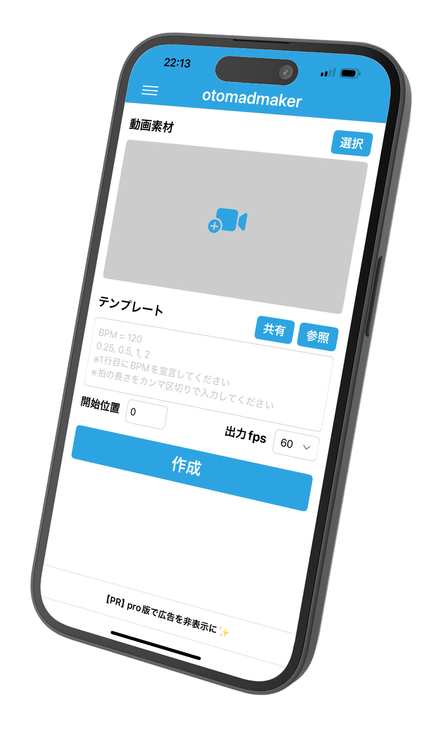 HOMEiOS版 otomadmaker iOS版 otomadmaker otomadmaker音MAD製作支援ツール 使い方 iOS版 otomadmakerの使い方 各部の名称と説明 iOS版 otomadmakerのメイン画面 (var 1.0.0) ボタン類 ①ハンバーガーメニュー アプリに関するリンクなどをま… 2024年11月17日 2025年12月21日 テンプレート配布 テンプレート配布サイト templates.otomadmaker.com 仕様 iOS版 otomadmaker 仕様 仕様 システム要件(2025年現在) デバイスiPhoneOSiOS18, iOS26 入力動画(動画素材) 対応形式 動画の秒数(“テンプレートの合計秒… 2025年12月14日 2025年12月16日 pro版を入手 iOS版 otomadmakerのpro版を入手 概要 月額150円で、ウォーターマークと広告を非表示にできます。また、このアプリは個人1人で開発しています。なので開発者への… 2025年12月16日 2025年12月17日 利用規約・プライバシーポリシー iOS版 otomadmaker 利用規約・プライバシーポリシー 利用規約 1. 利用規約について この利用規約は、本アプリ「iOS版 otomadmaker」の利用条件を定めるものです。ユーザーは、本ア… 2025年12月15日 2025年12月15日